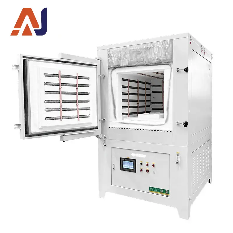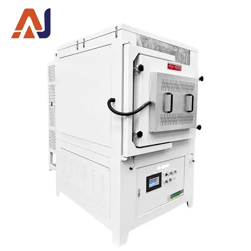 1200°C five-sided heating box-type resistance furnace with high temperature control accuracy. The furnace body adopts an air-cooled double-layer structure, keeping the outer shell temperature low. Equipped with multiple protection functions and programmable temperature control, it is suitable for ceramics, electronic materials, powder materials, and other applications requiring uniform heating and exhaust gas treatment.
